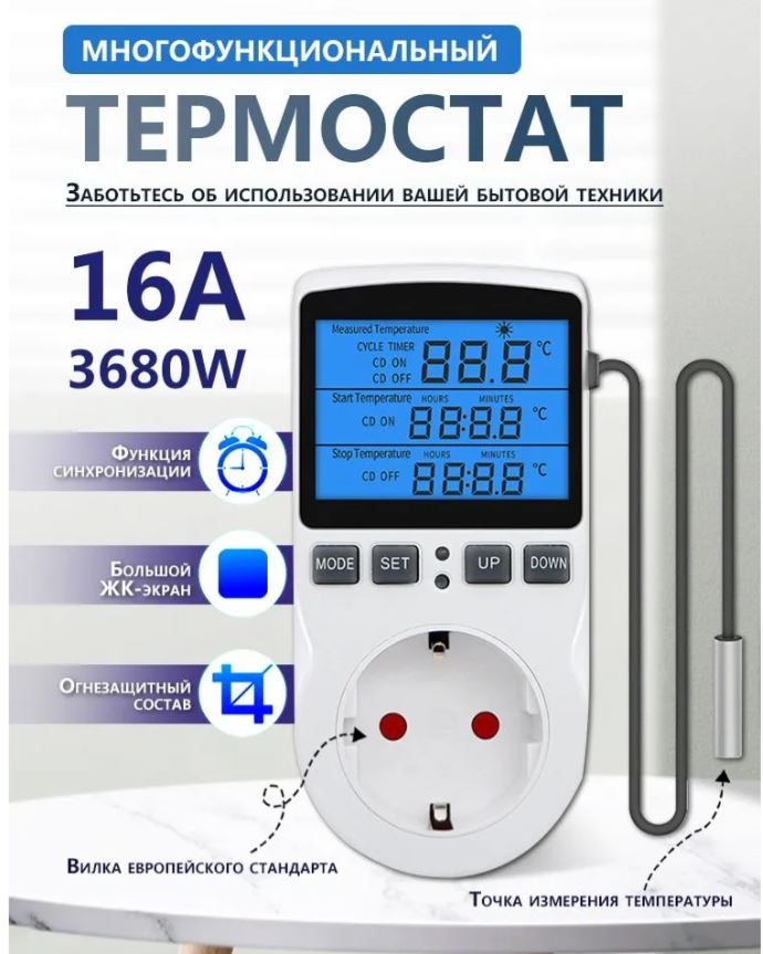 Терморегулятор для Ионизатора. 220В электронный с таймером и выносным датчиком температуры.