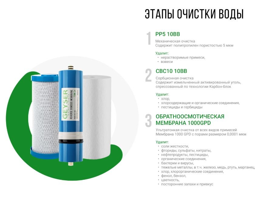 * Указанные значения актуальны при давлении перед мембраной 6 атм., а также зависят от состава и температуры очищаемой воды.