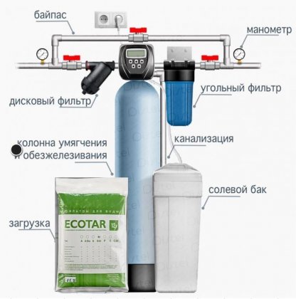 Исходная вода не должна содержать в себе высокого содержания железа (выше 0,3 мг-экв/л), т.к. оно приводит к "отравлению" ионообменной смолы. Вода должна быть очищена от хлора и органических веществ (перманганатная окисляемость до 5 мг/л). Общее солесодержание не должно превышать 1000 мг/л. Перед данной системой рекомендуется установить механический фильтр на 20 микрон, а после этой системы устанавливается фильтр угольный сорбент, для предоьтвращения выноса катионита дальше в систему и дополнительной доочистки после колонны.