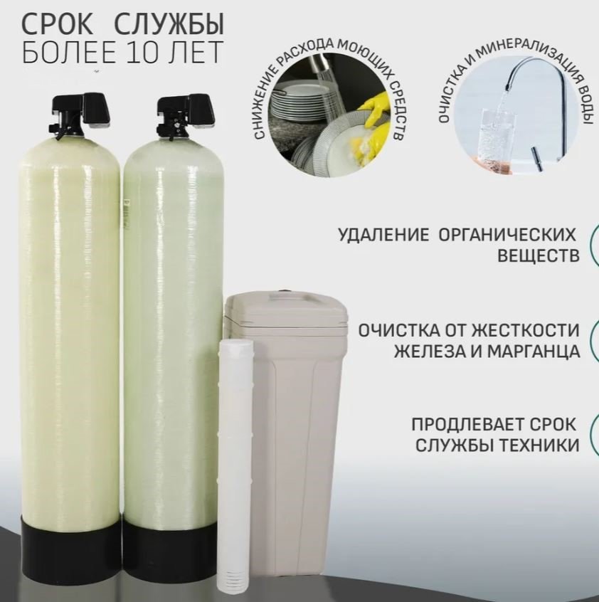 Комплексная система очистки "ЭСО-2.5-коттедж". Умягчение+обезжелезивание, Скважина: 75 м.