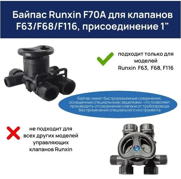 Байпас Runxin F70B (41102) для клапанов F65/F69, присоединение 3/4"